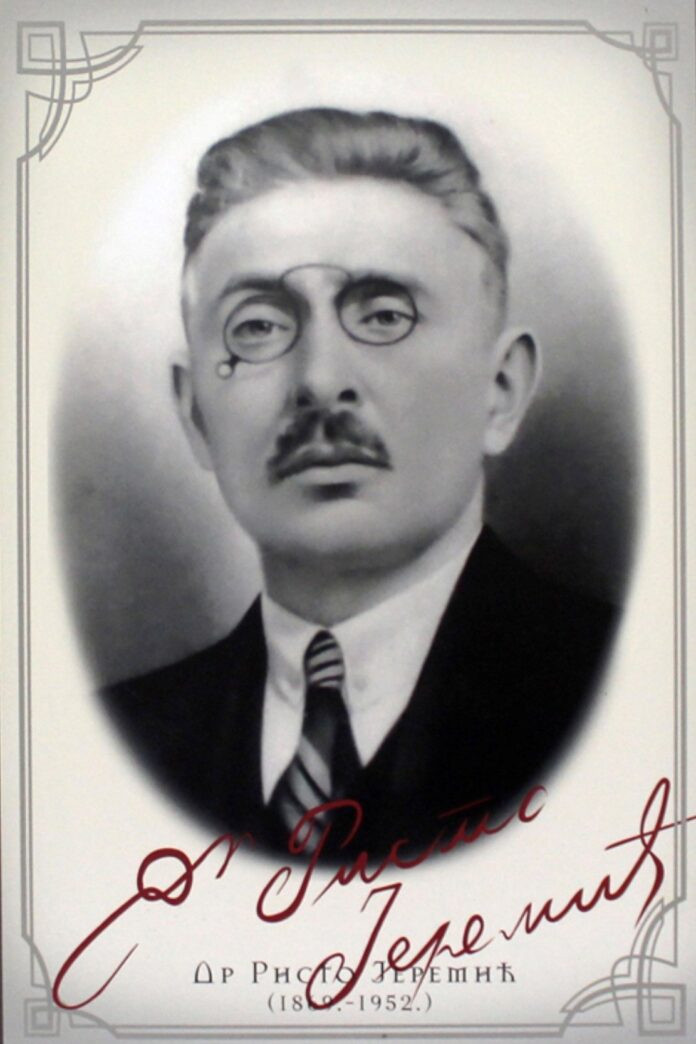 Dr Risto Jeremić rođen je 1869. godine u Foči, umro je 1952. godine u Mostaru. Jedan je od inicijatora i osnivača Srpskog kulturnog i prosvjetnog društva „Prosvjeta“, a potom predsjednik njenog Glavnog odbora.