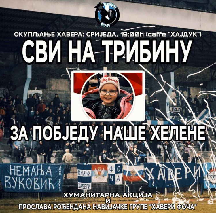 Utakmica će imati i humanitarni karakter. Navijači „Sutjeske“, popularni „Haveri“ sa klubom organizuju akciju prikupljanja pomoći za malu sugrađanku Helenu Gavran koja se bori protiv opake bolesti. Inicijativa je potekla od načelnika opštine Milana Vukadinovića, naglasili su u klubu.