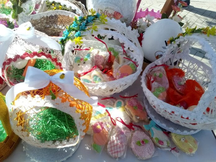 Rada Ivanović izložila je vaskršnje korpice od konca i čipke, ukrasna jaja, kolačiće…