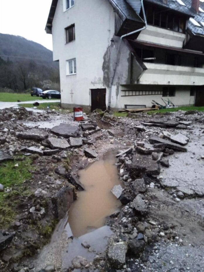 Voda i mulj prodrli su u stambenu zgradu na Tjentištu gdje živi osam porodica.