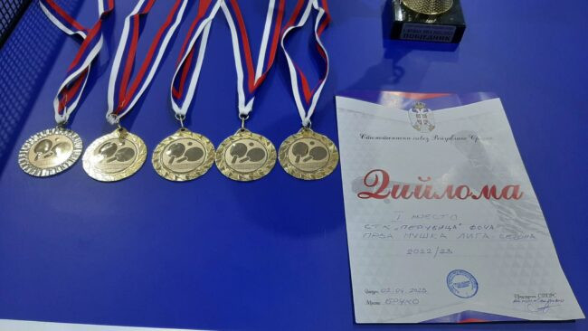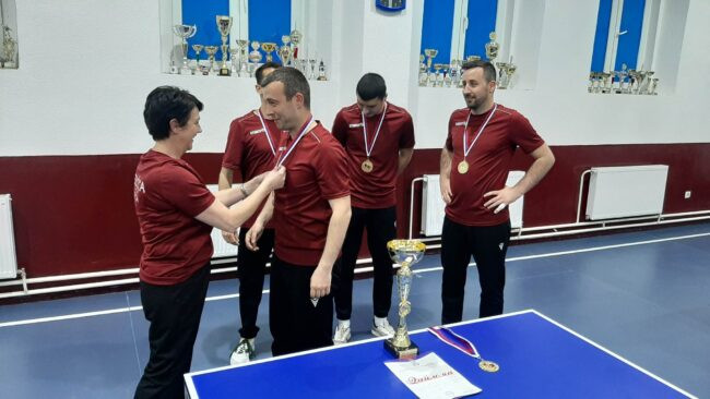 Stonoteniseri iz Foče Ognjen Pavlović, Aleksandar Drakul, Milivoje Vuković i Damjan Marković do šampionskog pehara i zlatnih medalja došli su ubjedljivo, sa 11 pobjeda i samo jednim porazom u sezoni.