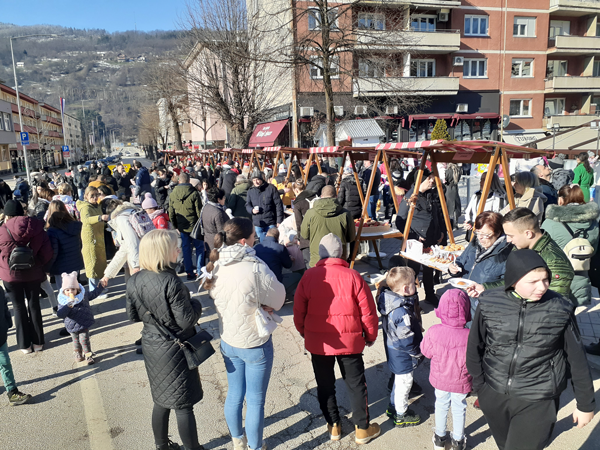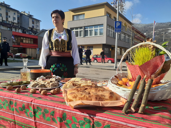Centrom grada širili su se i najljepši mirisi božićne trpeze. U duhu tradicije domaćini su poslužili jagnjeće pečenje, meze, pitu, sarmu, kolače. Neizostavnu malobožićnu česnicu pripremile su vješte ruke Dragine Bilinac, kuvarice u fočanskom vrtiću.