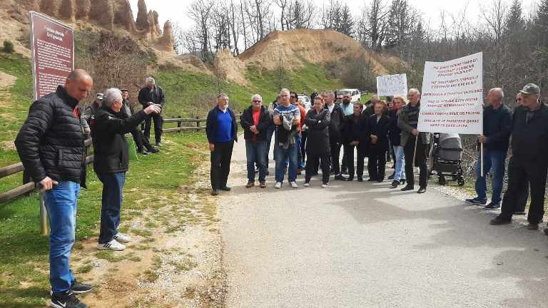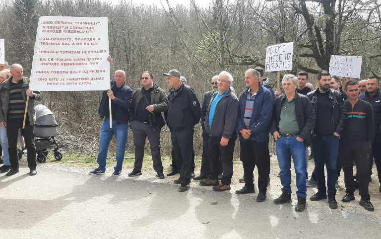 Mještani koji se protive najavljenoj mogućnosti gradnje privremene sanitarne deponije na lokalitetu Grabe u mjesnoj zajednici Kozja Luka danas su održali protestni skup kod Pješčanih piramida sa kojeg su još jednom pozvali lokalnu upravu da odustane od te namjere.