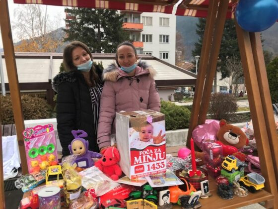Odjeća, igračke, kolači samo su dio predmeta koji su Fočaci mogli da kupe na Gradskom trgu, a potom su u humanitarnu kutiju ubacivali dobrovoljni iznos novca namjenjen za liječenje dječaka Olivera, koji boluje od iste bolesti kao Minja.