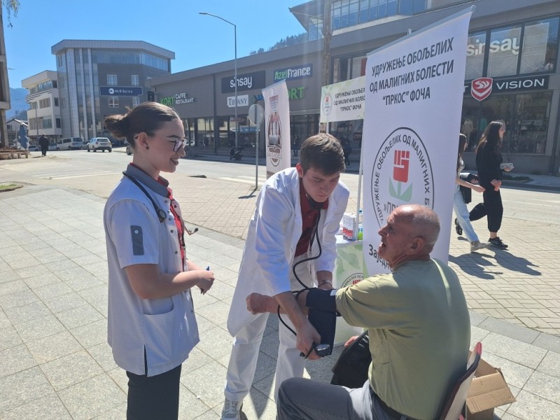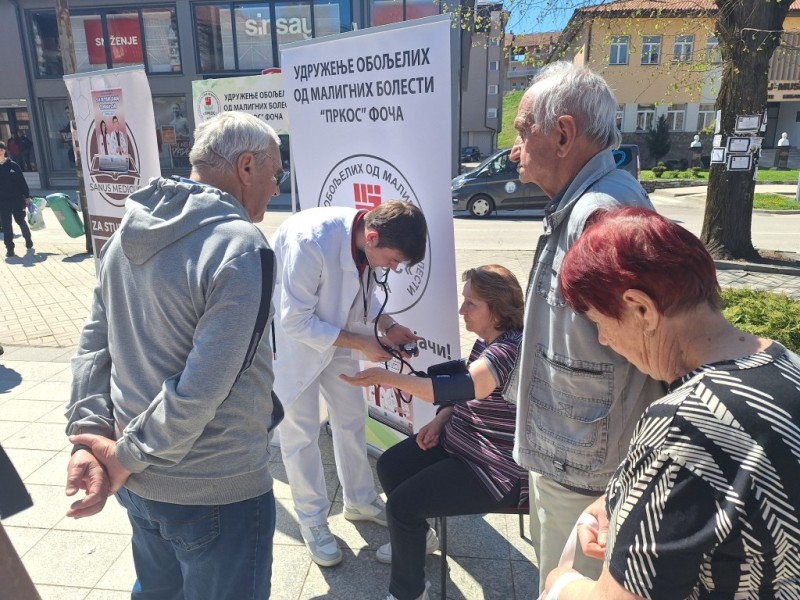 Besplatnim mjerenjem nivoa šećera u krvi i vrijednosti krvnog pritiska u Foči je obilježen 7. april – Svjetski dan zdravlja. Preventivnu akciju na Trgu kralja Petra organizovali su udruženja studenata „Sanus medikus“ i oboljelih od malignih bolesti „Prkos“.