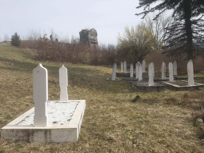 Sa jedne strane stijene je pravoslavno, a sa druge muslimansko groblje.